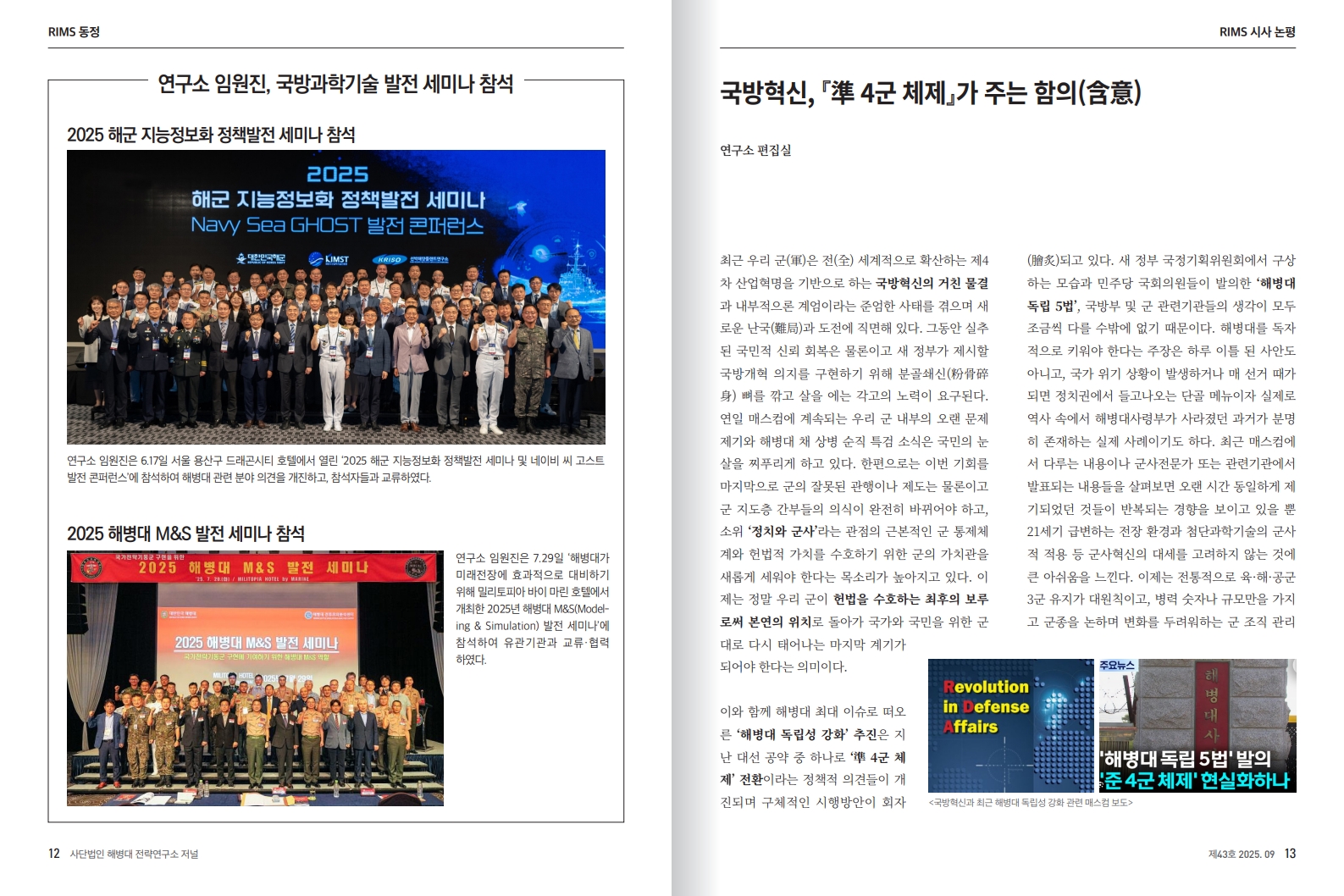 | 해병대전략연구소 RIMS 저널 제40호 발간 (0) | 2025.01.17 |